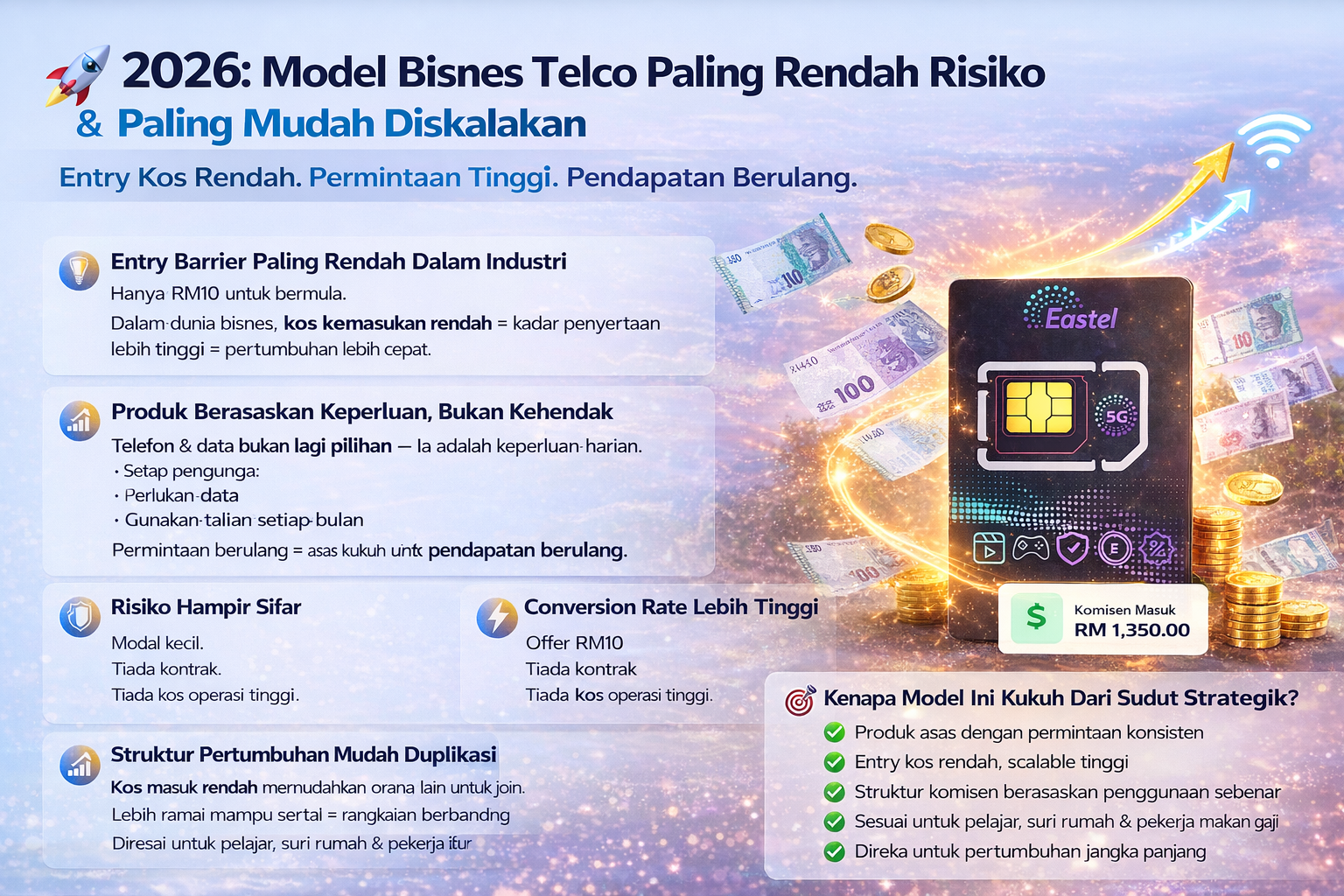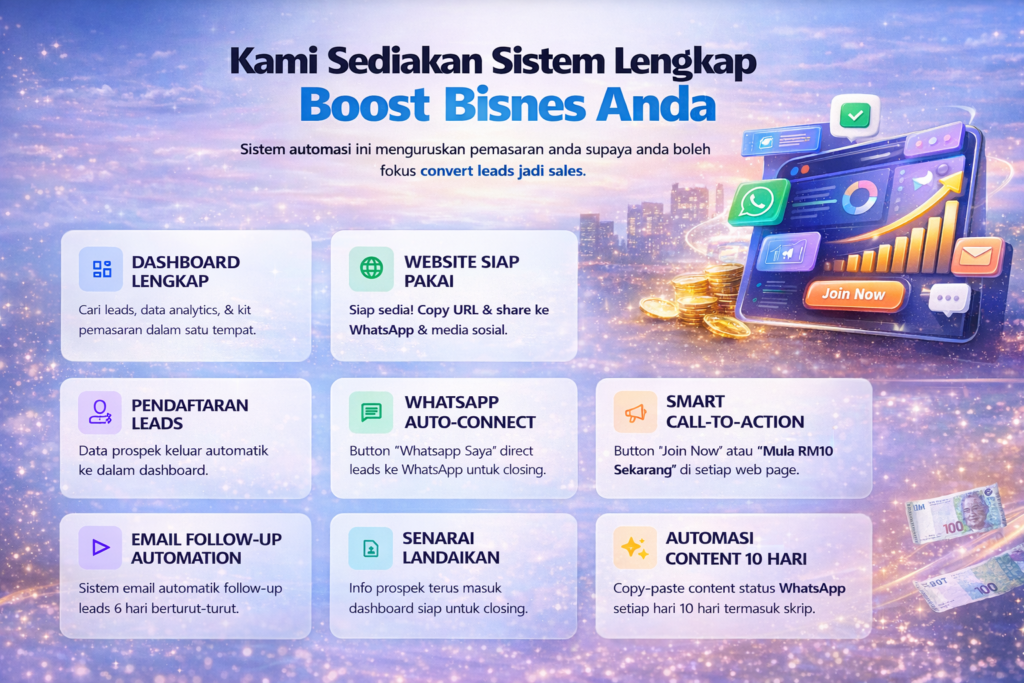 Dengan hanya RM10, anda dah boleh mula bisnes Telco yang berpotensi jana income berterusan. Tak perlu stok barang, tak perlu kedai, tak perlu modal ribu-ribu.